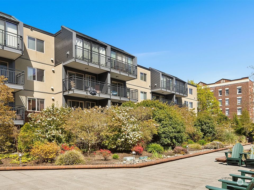 Fantastic South-facing property in Queen Anne’s premier Courtyard building! This remodeled third-floor gem features brand-new stainless steel appliances, LVP flooring, carpet, and fresh paint. Enjoy morning coffee on your private balcony that overlooks the peaceful courtyard. The perks continue to include secured garage parking, in-unit laundry, and a storage unit. Well-run HOA offers exceptional amenities, including a gym, media room, and BBQ area for sunny day gatherings. Dreamy location within blocks of restaurants, Climate Pledge arena, Downtown, Interbay, and South Lake Union, and all of the amenities Seattle has to offer. Don't miss out on this rare opportunity!