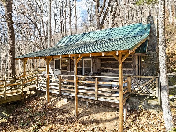 Escape to your own mountain hideaway! This charming 468 sq ft log cabin (1 bedroom, 1 full bath) sits elevated on 1.92 unrestricted wooded acres, where you can fall asleep to the soothing year-round sound of Hemphill Creek rushing below the property. A large native stone fireplace anchors the open living area, while the covered front porch and wrap-around elevated deck offer the perfect spot to relax and enjoy the peaceful forest setting. Inside you’ll find warm wood walls, a cozy living space with a gas fireplace with stone hearth, efficient kitchenette, comfortable bedroom, and full bathroom. New Metal roof, new windows, new mini split HVAC system and solid construction make this cabin move-in ready and easy to maintain. Level parking area and plenty of room to expand. Tucked away in mature hardwoods for total privacy, yet just minutes from the Great Smoky Mountains National Park, hiking, rafting, and area attractions. No HOA, no restrictions—ideal for a personal getaway, short-term rental (Airbnb/VRBO), or full-time minimalist living. Rare opportunity to own an affordable turn-key Smoky Mountain cabin with acreage, creek sounds, and no restrictions. Your private mountain retreat awaits!