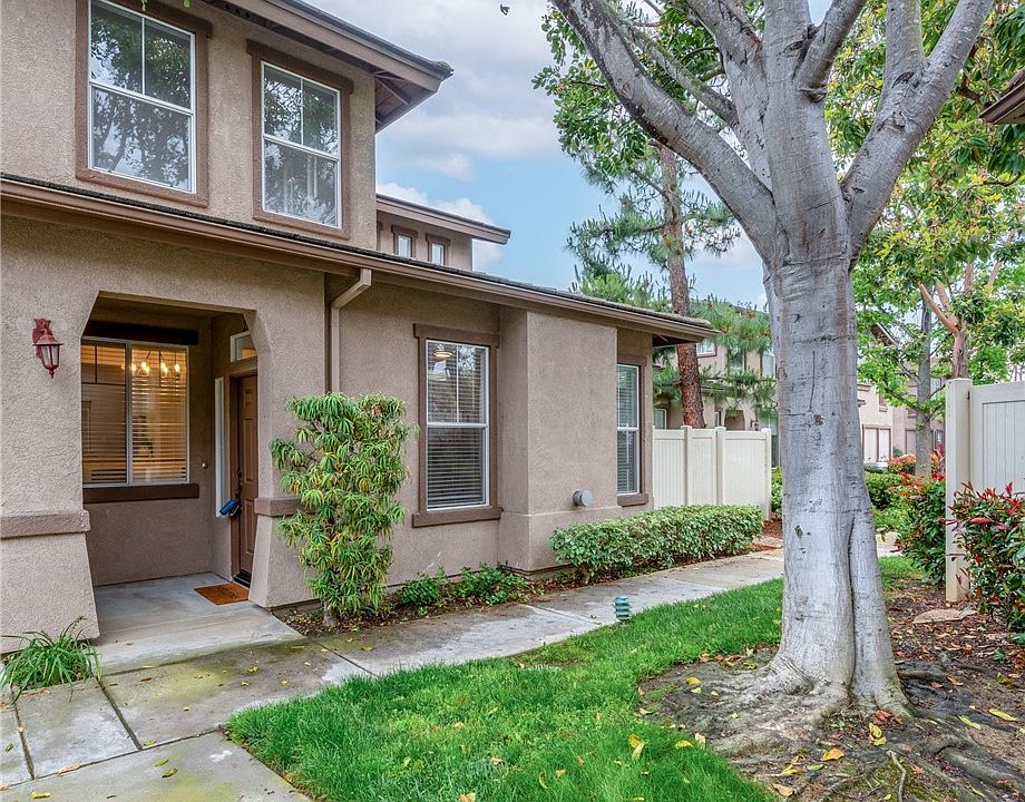 A rare floor plan in the Canyon Vistas with a BED AND BATH DOWNSTAIRS and NO NEIGHBORS ABOVE OR BELOW THE UNIT!!!  This end unit-3 Bed/3 Full Bath condo has everything you need from a private entry, an inviting living room with traditional fireplace, a designated and open dining area, a convenient kitchen with designed cabinetry, quartz counter, and refrigerator, a huge walk in closet for ample storage, a separate laundry/utility room, a two car direct access garage and a SERENE BACKYARD.  The upstairs has a modern workstation, a complete master suite with a spacious walk-in closet, a secluded  secondary bedroom, and a full bathroom. All the windows in this house not only bring excessive ventilation, but also adds maximum privacy to the house.  The community amenities including breathtaking views, huge pool and spa, greenbelt, gym, and clubhouse offer ample recreational opportunities. Conveniently located near award-winning schools, community parks, shopping centers, freeways, and the BEACH, this home offers a balanced lifestyle to its residents. Low Taxes and NO MELLO ROOS!!!