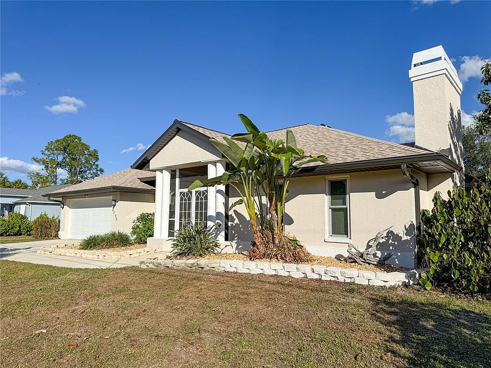 Discover luxury, privacy, and stunning lakefront views in this beautifully updated nearly 2,200 sq ft home on a 20,000 sq ft double lot. Featuring 3 bedrooms + den, 2 bathrooms, and a 2-car garage, this residence blends modern comfort with sophisticated finishes and premium upgrades—inside and out. Major Upgrades & Peace of Mind -NO flood insurance required- Flood Zone X -New roof & skylights (2023) -New hurricane-impact windows & doors (2024) -New smart-enabled garage door system (2024) -Fresh exterior paint (2025) -Fully remodeled bathroom (2025) -Septic pumped & inspected (10/2025) -Pre-sale home inspection completed (Dec 2025) -1-year home warranty included -Smart Home Features -Control your home from anywhere with integrated smart systems: -Smart interior & exterior lighting -Automated, smartphone-controlled heated saltwater pool & spa -Smart garage opener -Smart door lock access Interior Features & Finishes: -Open-concept layout with abundant natural light -Porcelain, marble, & travertine tile throughout -Exotic granite countertops -Stainless steel kitchen appliances -Wood-burning fireplace plus modern electric fireplace feature wall -Dedicated den/home office or flex room -Extensive storage throughout Laundry & Utility Highlights: -New washer & dryer (2025) with transferrable extended warranty -Quartz countertops & built-in utility sink in laundry room -Hot water recovery system integrated with AC for efficiency -Oversized storage cabinetry Outdoor & Lot Features: -Peaceful lakefront views and sunsets -Screened heated saltwater pool & spa, automated via smartphone -Variable-speed pump & sand filter system -Mature landscaping featuring 20+ fruit-bearing trees -Expansive double lot offering privacy, gardening space, and room to play With nearly every major component recently upgraded—including roof, windows, pool systems, paint, septic, and appliances—this home offers modern, turnkey living with minimal maintenance. Smart home systems enhance security, convenience, and comfort. Schedule your showing today and experience this exceptional lakefront property! Showing by appointment ONLY, DO NOT tour property without an appointment.