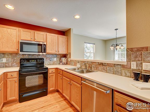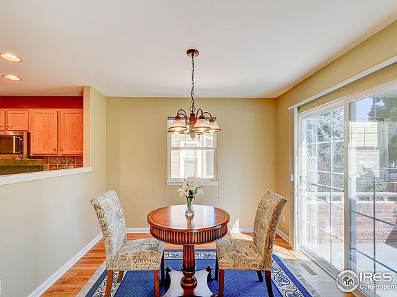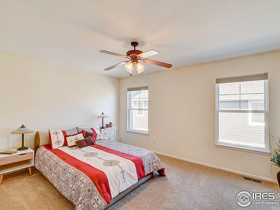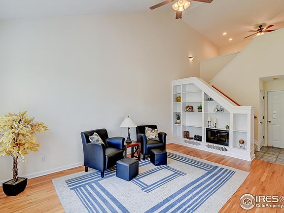 Come see this end unit townhome located in Harvest Park. Enjoy your private front patio or all the community amenities from the pool, clubhouse, park, basketball courts, walking trails, and green space. Convenient to shopping, schools, Twin Silos Park. This South facing property offers tons of natural light, hardwood floors on the main level, and a half bath. The primary bedroom has a large soaker tub in the on-suite bathroom and a walk-in closet. There are ceiling fans in the bedrooms, living room and loft. The 2-car garage is oversized and has an insulated garage door. All windows on the south side of the house were replaced in 2020 along with the roof. There is a full unfinished basement with rough-in for bathroom for future expansion.