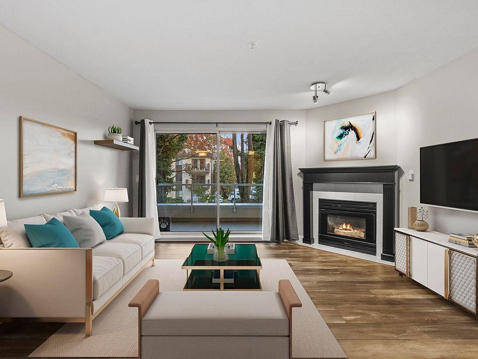 Welcome to The Fairlane, a meticulously well-maintained building in the heart of Abbotsford! Beautifully updated 2-bedroom, 2-bathroom home offers style and comfort throughout. The modern kitchen features new countertops, backsplash, hood fan, sink & faucet. Every light fixture is new! Freshly painted all throughout, new laminate flooring, new upgraded mouldings and baseboards create a clean, contemporary feel in every room. Both bathrooms have been tastefully redone for a fresh, modern look. Spacious layout, cozy gas fireplace & large covered deck. Enjoy a move-in-ready home in a quiet, convenient location close to shopping, parks, and transit. A must-see for anyone seeking quality and value! OPEN HOUSE SAT NOV 15; 2pm-4pm