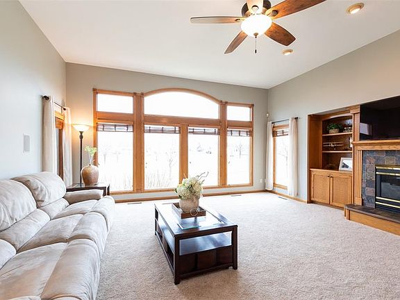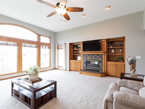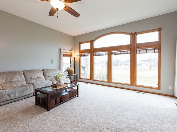 Great opportunity to live on the golf course at Hunters Ridge! This main level master floorplan has a large great room with 12' ceilings, a wall of windows overlooking the 5th green & gas fireplace. The kitchen has granite tops, plenty of space, eat in area & gas fireplace that is 2 sided with great room. The formal dining room (current office) has hardwood flooring. The master suite has new carpet, 2 walk in closets & a huge bath with double vanity, shower & soaking tub. Upstairs are 3 nice sized bedrooms with new paint & carpet. The lower level is finished & has a large storage area. Fresh paint throughout, main level laundry, central vac, whole house humidifer, home warranty.