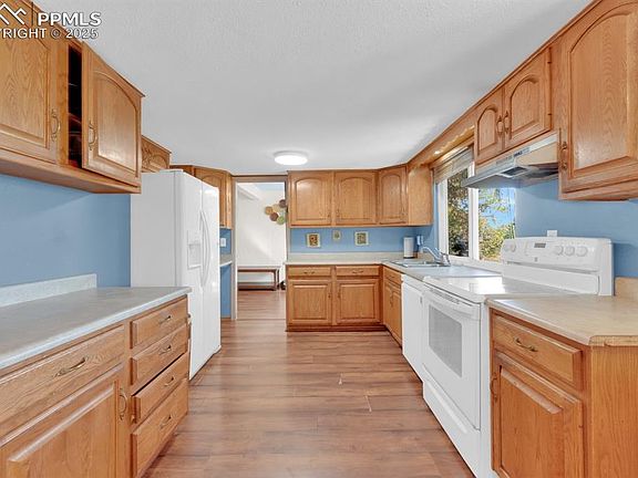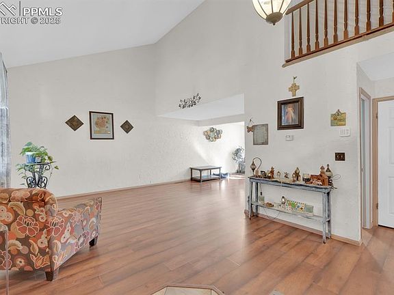 Welcome to this 5-bedroom, 4-bathroom home offering a perfect blend of comfort, functionality, and views of Pikes Peak. Step through the elegant double-door entry into an open and inviting floor plan featuring abundant natural light. The spacious kitchen includes a cozy breakfast nook, ideal for morning coffee or casual dining, while the formal spaces are perfect for entertaining. The finished basement boasts a large recreation room, providing endless options for family gatherings, game nights, or a home theater. Outside, enjoy Colorado living at its finest on the covered back deck, where you can relax and take in mountain views year-round. Practical features include a 3-car garage, a thoughtfully designed xeriscaped front yard with mature trees for added curb appeal, and ample storage throughout. With its blend of style, space, and location, this home truly has it all.
