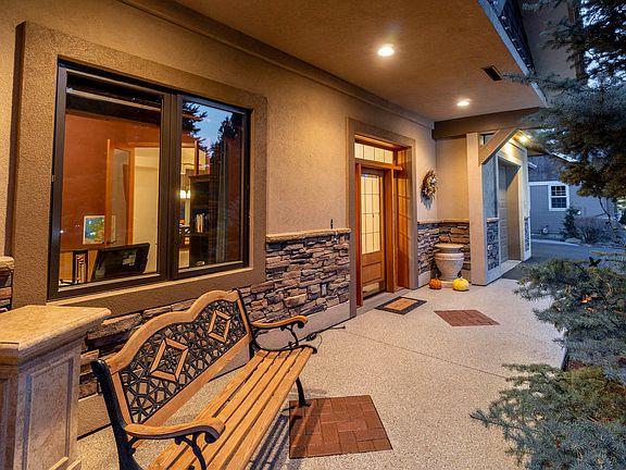 Awbrey Glen single story situated on corner lot directly across from pond on 7th & 8th greens. Great Rm is open with raised hearth fireplace, ceiling fan and is open to the dining and kitchen. Spacious kitchen is a cooks dream with newer induction cooktop, granite counters, pantry, and cabinets galore. Four season enclosed patio is perfect for large gatherings overlooking the backyard & water feature which changes it's appearance daily during the Winter months. Office is just off entry with double glass doors. Master suite has sliding doors leading out to the enclosed patio, dual vanities and state of the art shower. One guest bedroom has built-in murphy bed. Hydronics radiant flooring keeps your utility costs down while supplying wonderful heat to the home that you don't even have to run the furnace. Central vacuum system throughout. Oversized 2 car garage has epoxy floors with built-in cabinets, sink and workbench. And much, much more!