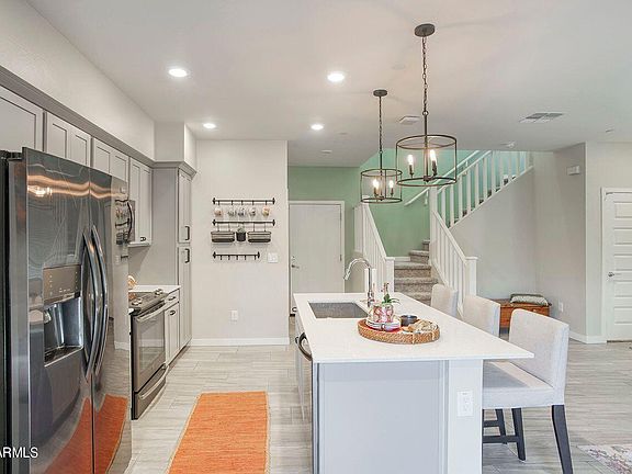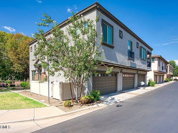 Highly desirable, turn-key townhome in a gated, lake community in the heart of Gilberts shopping and entertainment area of SanTan Mall.This 2018 built 3 bedroom 2.5 bathroom has been lovingly cared for and ready for new owners. The open concept main floor leads out to an entertainers patio with tree shaded views of the pond & fountain. The kitchen includes an upgraded oven with convection, & Frigidare refrigerator, plus white quartz counters. The upstair laundry includes G.E. front load washer and dryer on pedestals. The upgraded floor tile is a 24X12 porcelain. This ''smart'' home has everything integrated and comes with an echo dot and echo show. Welcome home.