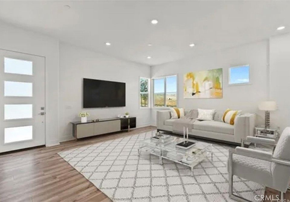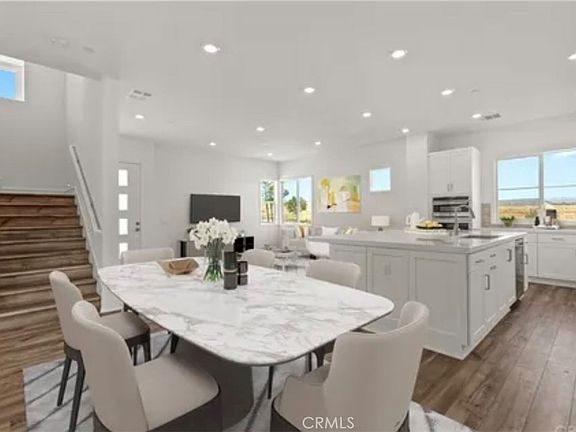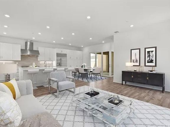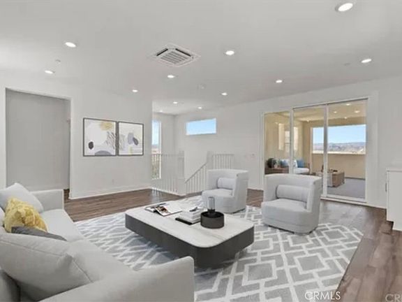 Welcome to modern luxury in the heart of Five Point Valencia. This stunning Lennar Rosemist Plan 4, the largest and most desirable model in the community, was completed a couple years ago and offers the perfect blend of sophistication, comfort, and style. With five bedrooms, four and a half bathrooms, and three spacious levels, this home showcases impeccable design and attention to detail. The main floor features an open-concept, dining area, and chef’s kitchen with a large quartz-topped island, professional-grade stainless steel appliances, and a six-burner cooktop with designer hood. Ten-foot ceilings and wood-like LVP flooring create a sense of warmth and grandeur throughout. A guest bedroom with a full bath on the first floor provides flexibility for visitors, extended family, or a home office. Upstairs, the luxurious primary suite offers a peaceful retreat with a spacious walk-in closet, dual vanities, soaking tub, and separate shower, while three additional bedrooms, two more baths, and a laundry room complete the second floor. The top level is a versatile bonus/loft area featuring its own bathroom, wine fridge, counter space, and a covered terrace with panoramic views of the Santa Clarita Valley—perfect for a game room, gym, or lounge. Enjoy year-round outdoor living with a gated backyard and covered patio ideal for dining or relaxing. Located within the vibrant Five Point community, residents have access to world-class amenities including three pools, a spa, BBQ areas, playgrounds, scenic greenbelts, and a resort-style clubhouse. Conveniently close to shopping, restaurants, top-rated schools, Magic Mountain, and freeway access, this like-new home offers the best of modern design and community living in one of Valencia’s most desirable neighborhoods.