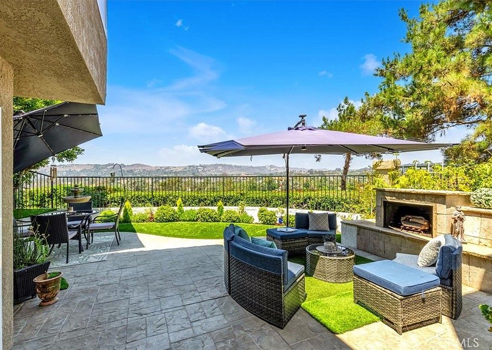 Perched on a premier trophy lot overlooking the San Juan Hills Golf Course, this impeccably maintained Mesa Vista residence offers 180° views of rolling hills, breathtaking sunsets, and the iconic Mission San Juan Capistrano. Enjoy the soothing sound of mission bells and cool coastal breezes from your own backyard. This beautifully upgraded home features 2 bedrooms, 2.5 bathrooms, a spacious loft, plus an additional loft/flex space—ideal for a home office. The open, light-filled floor plan flows seamlessly from the welcoming living room, anchored by a cozy gas fireplace, to the expansive wraparound patio through large sliding glass doors—blurring the line between indoors and out. The back patio has been reimagined with multiple seating areas and a built-in outdoor fireplace, perfect for entertaining. Inside, designer touches abound, including custom stone tile work and a chef’s kitchen with high-end appliances, gas stove, solid cherry wood cabinetry with glass accents, and convenient pull-out storage. A sunny breakfast nook, formal dining area and powder room complete the main level. Upstairs, the primary suite boasts sweeping views, a remodeled bath with dual vanities, heated floors, and a step-in shower with floor to ceiling custom stone tile. The secondary bedroom and bath offer comfort for guests, while the loft spaces provide flexibility for a media room, hobby space, additional guest room or office. Additional highlights include direct access 2-car garage with laundry hookups and utility sink, tankless water heater, ample storage, and a whole-house fan. Mesa Vista offers resort-style amenities with 3 pools/spas, RV parking options, and a paved "paseo" walking path—all just minutes from top-rated schools, hiking trails, world-class beaches, dining, golf, equestrian facilities, and historic downtown San Juan Capistrano with the new River Street Marketplace and the Farm Ecology Center. This is Southern California Living At Its Finest—Welcome Home!