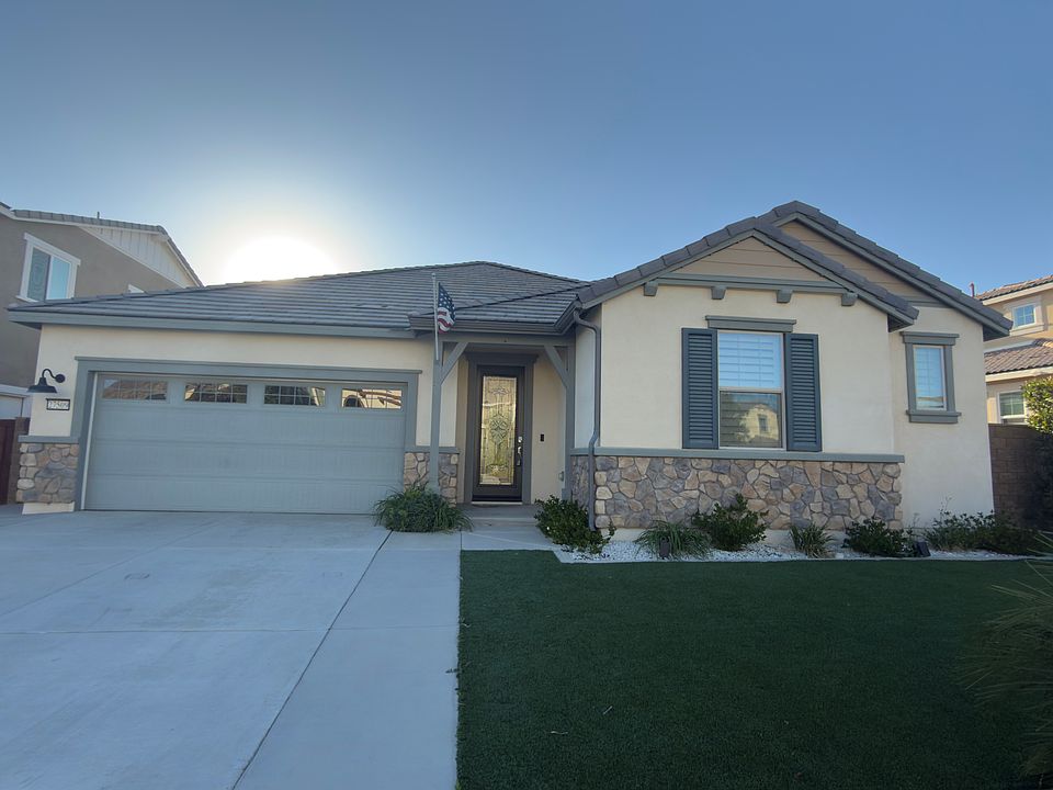 Beautiful single-story 4 bedroom, 3 bathroom home for rent in Heritage Lake. Located on a quiet cul-de-sac, this home features an open floor plan with high ceilings, spacious bedrooms with walk-in closets, and a gourmet kitchen with large island and granite counters. The primary suite offers a walk-in closet, dual sinks, tub and shower. Low-maintenance yard with artificial turf, private backyard with covered patio, plus paid-off solar to help lower electricity costs. Enjoy all of Heritage Lake's amenities including pools, clubhouse, trails, sports courts, and parks, all just minutes from the lake.