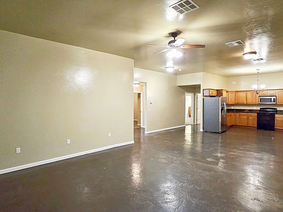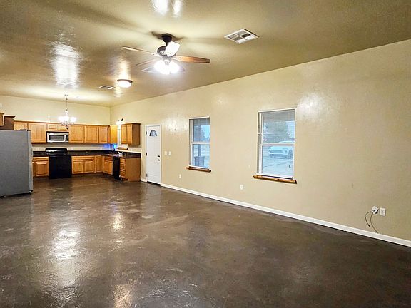 Spacious 4-bedroom, 2.5-bath home with an open-concept design. The living, dining, and kitchen areas connect seamlessly, creating a roomy and welcoming space. The kitchen includes wood cabinetry, a side-by-side refrigerator, built-in microwave, and dishwasher. All bedrooms are nicely sized, with the primary bedroom being especially large and designed for comfort. Additional features include laundry hookups, an attached garage, and a private storm shelter. An extra storage unit is also available for rent if desired. Each home on this quiet street has its own well, adding to the unique appeal of the neighborhood. Located in a peaceful rural setting, this home offers both comfort and convenience. Schedule your private viewing today!