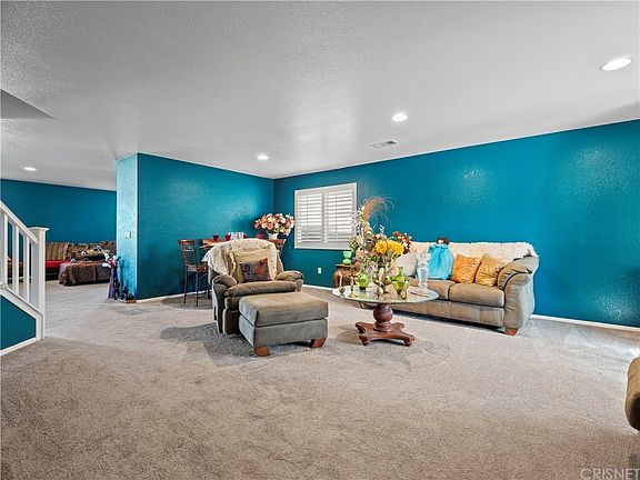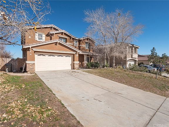 5 Bedrooms Palmdale Home. The home features newer paint, a living room, a family room with a fire place. The kitchen has granite counter tops and a center island.