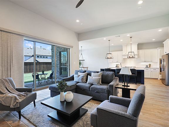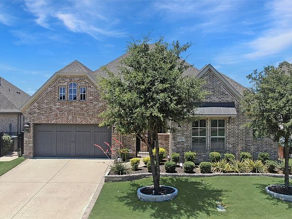 Driving up to this home attention is focused on the tree lined streets, manicured lawns and picturesque landscaping. To arrive at the entryway you pass through a peaceful courtyard complete with sitting area. Once inside be sure to notice the tile flooring, adjustable lighting and eight foot solid wood doors. Each bedroom has an ensuite, walk in closet and ceiling fan. This is a luxury one story home with twelve foot ceilings, media room and study. Approaching the Great Room there is a gas fireplace, over head ceiling fan and a wall of sliding glass doors that open to a covered patio. The eat in gourmet kitchen offers plenty of cabinets for storage, quartz counter tops, farm sink, gas cooktop, butlers pantry and a walk in food pantry. The floor plan has two bedrooms towards the front of the home with the Primary Retreat in the back corner featuring a trey ceiling, spa like ensuite with separate vanities, separate shower and a primary closet leading to the laundry room. The backyard is an open canvas for you to create the at home getaway you have always dreamed of with a side walkway leading to the front yard. The tandem garage features three parking spaces, overhead storage and a mud room upon entering the home. Close to hiking and biking trails, a community pool, club house and neighborhood park with soccer feilds, basketball courts and pickleball courts. Location is the key in DFW this home is located bt 380, 75 and the DNT.