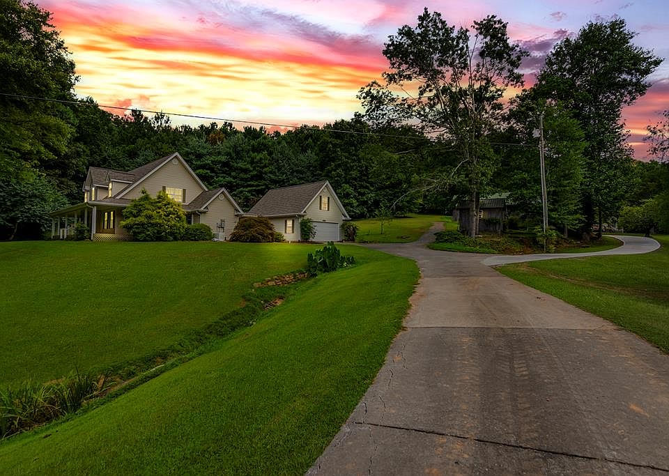 HOME SWEET FARMHOUSE - This Beautiful Home nestled in the North Georgia Mountains features 2 Bedrooms (with an easy 3rd), 2 Full Baths, Half Guest Bath, Master On Main with 2 Large Closets, Large Master Bath, Living Room, Formal Dining Room, Country Kitchen with Breakfast Area and Large Laundry Room with Walk-In Pantry. Upstairs you will find a Large Family Room with Pool Table, 2nd Bedroom and Lots of Storage. Rocking Chair Wrap Around Porch, Sun Room looking out to an impeccable Level Back Yard, 2 Car Garage with Room Above, Concrete Drive Way, Whole House Generator, 30' by 40' Building and 10' by 12' Storage Building. This Home is placed on Well Manicured 5.82 Acres just across from one of Gilmer Counties Finest Vineyards.