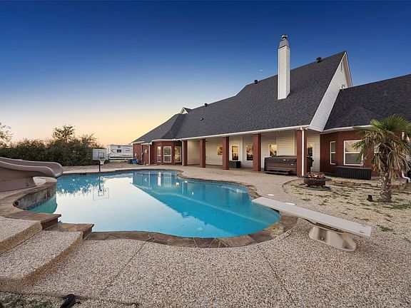 Escape to a place where wide-open skies meet refined comfort. Set on 3.7 picturesque acres just minutes from Denton and US-380, this extraordinary ranch-style estate delivers the perfect blend of country tranquility and modern sophistication. From the moment you arrive, the property feels like its own private world, sprawling pastures, mature trees, and a beautifully designed home crafted for both relaxation and recreation. Step inside and you’ll find rich custom oak cabinetry throughout, an inviting open layout, and elegant touches like two fireplaces and a dedicated office. The gourmet kitchen flows effortlessly into formal and casual dining spaces, perfect for family meals or entertaining guests. When it’s time for fun, this home delivers in every way, host movie nights in the fully equipped media room or unwind in the game room with a wet bar that’s built for making memories. Outdoors, paradise continues with a sparkling 40,000-gallon saltwater pool, ideal for cooling off under the Texas sun or enjoying peaceful evenings surrounded by open space and starlit skies. Every detail has been thoughtfully designed to balance luxury with livability: a spacious walk-in pantry, oversized laundry room, and smart utility setup featuring a functioning well, aerobic system, and 6-inch water line access at the road. With prime frontage along Mitchell Road, this property also offers incredible investment flexibility, plus the option to expand with additional acreage available. Whether you dream of a family retreat, a personal ranch, or a forever home that truly feels like an escape, this estate is your opportunity to have it all. Additional acreage is available, up to 42 acres in total!