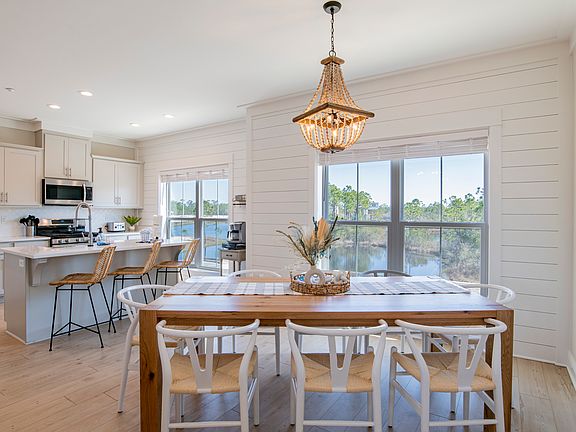 Upon entering the second level you will find an open concept living/dining space perfect for prepping meals and enjoying time with family and friends. The cozy living room includes a 55" Smart TV and comfy sofa with queen size sleeper bed. The luxurious kitchen includes Quartz countertops, Shaker Cabinets, stainless steel appliances, refrigerator with ice maker, 5 burner gas stove, apron front sink, dishwasher and island with seating for 3 people. Not to mention the cute little coffee/cocktail bar. Also in the kitchen you will find the laundry room. Down the living room hallway is a full bathroom with walk-in shower. From the living room, open the French doors and step out onto your covered patio complete with outdoor furniture so you can relax and soak in the beauty of Gulf State Park Wetlands right behind the house.
