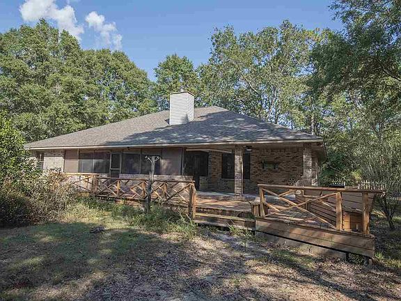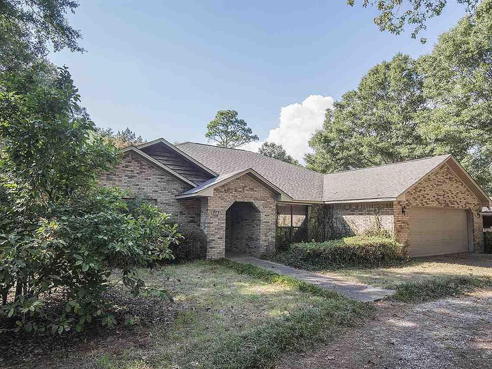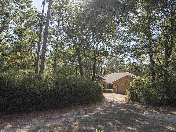 PRIVACY GALORE.... on 8.2 beautiful wooded acres full of large Oaks, Dogwoods, fruit trees plus a pole barn and separate large workshop. Solid custom brick home...split bedroom plan with big open kitchen and family room. Amazing amount of solid wood kitchen cabinets, lots of counter space - Cathedral ceiling in huge family room with fireplace - formal dining room. Super sized laundry with lots more cabinets & work area. Big screened porch & large deck and attached double car garage. This house lends itself to great entertaining with spacious inside and lots of outside areas to relax, enjoy a cook out, play games, and just roam around the woods. Plus a SUPER EXTRA FEATURE---- There is a detached approximately 1225 sq ft brick workshop+ carport that is a dream for wood working and puttering, etc. or could become a terrific mother-in-law quarters/apartment. the 3rd bath is located in this separate building. Brand new roof on house installed 2019. Close in to the 5 Points area of Pace. Zones AG RR