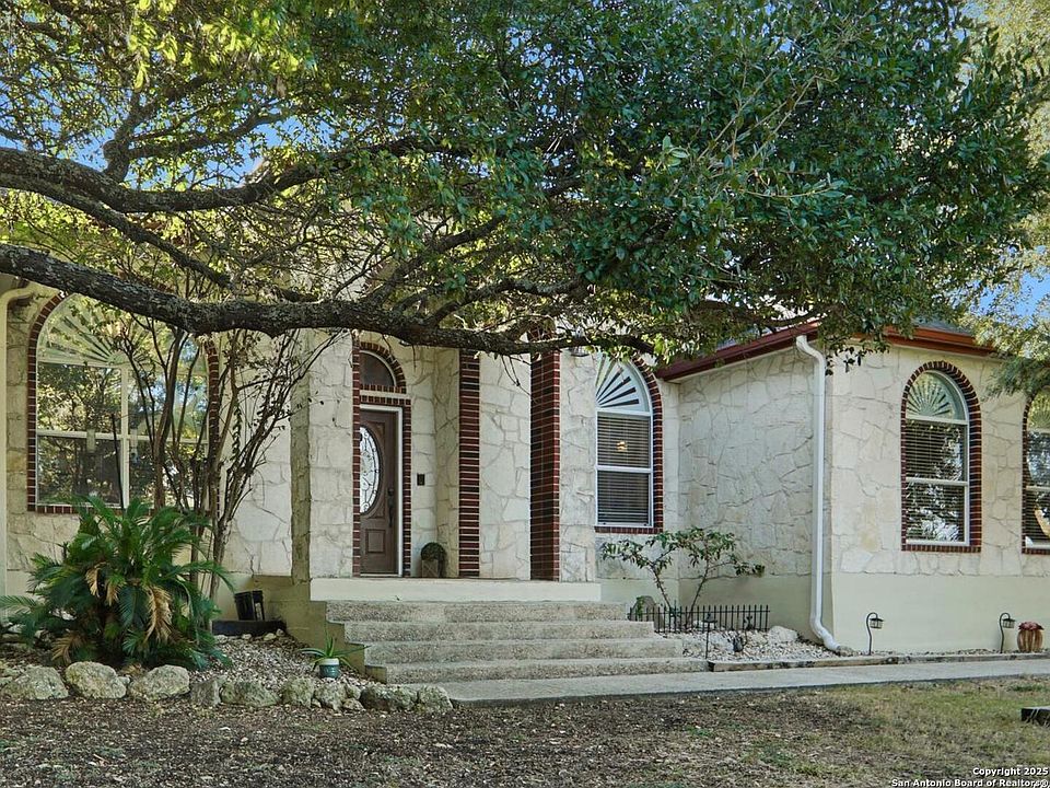 Majestic oak treesHill country viewsFlexible spacesCorner lotStone patioWelcoming front porch