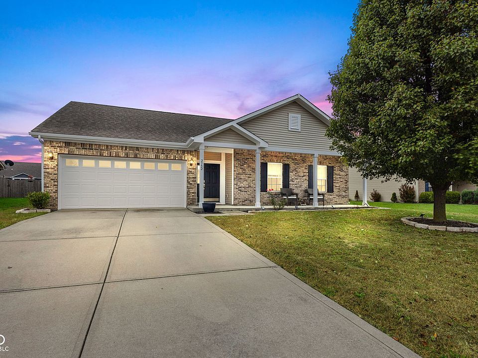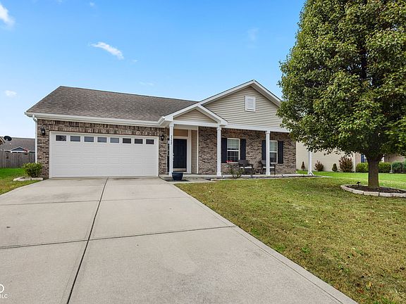 Move-in ready! *New carpet in family room & hallways, Newly painted exterior, front porch & columns, Newly painted inside garage with trim, insulated and finished, Water heater new in 2024. Dining room table & chairs included (New 2024). Washer & dryer Included (new 2024). Don't miss this one! Nestled at 2752 Arklow WAY, BROWNSBURG, IN, at Northfield at Wynne Farms, this single-family residence in Hendricks County presents a 3 bedroom, 2 bath ranch home. The kitchen is thoughtfully designed with 42" upper Maple cabinets, making it a wonderful place to prepare meals and enjoy casual dining with open dinette, kitchen & family room separating with 1/2 wall with wood top. The primary bedroom provides a large retreat with its own ensuite bathroom & walk-in closet. 2nd full bath is located by the other 2 bedrooms separate from the Master Bedroom. 2-car finished garage with water softener with garage newly Finished & painted. Family room has a wood fireplace for relaxing evenings! 9' ceilings throughout. Large covered front porch for with back patio that has a large fenced in yard with black aluminum fence with water view. The property also offers the practical features of a Walk-in laundry; all designed to enhance everyday living. Microwave above stove (New in 2024), All lower cabinets have child protective locks throughout home. Built in 2013, Home has 1522 sq ft of living space with back yard water view, all designed to project a comfortable atmosphere. Community benefits include a Community Pool, Playground and Basketball Court with access to B&O Trails. A wonderful opportunity to enjoy comfortable, single-story living. Schedule your tour today!