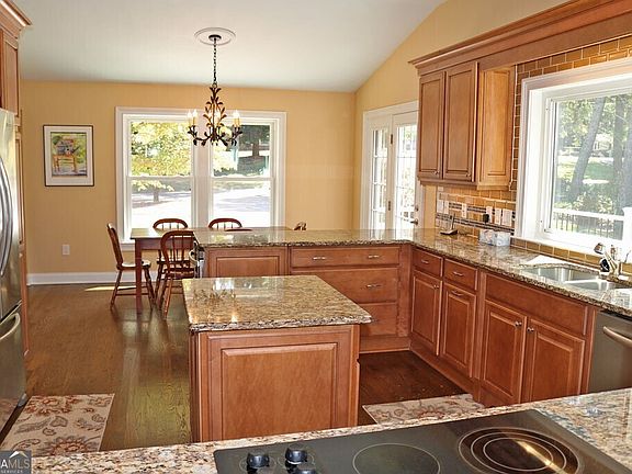 Finished daylight basementWood burning fireplaceLarge deckComposite deckingUpdated kitchenHuge islandOutbuilding for storage