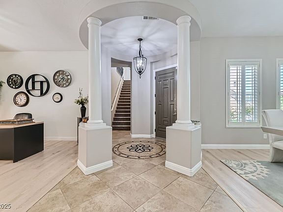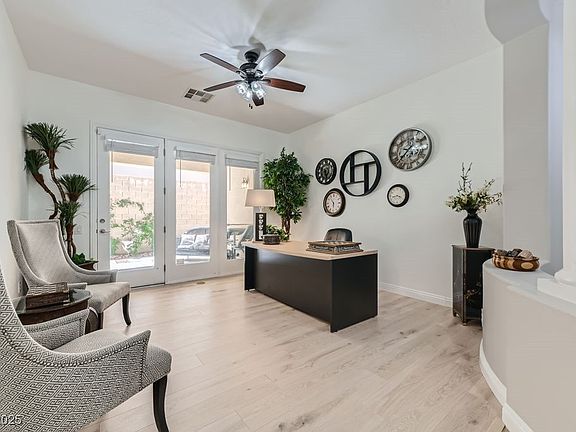 This special find has a highly desired layout with the Master Suite downstairs as well as the Laundry room, and extra spaces such as a a den and dining area. In addition there's the open kitchen and great room, and you see beautiful landscaping, and a putting green from 5 different exits with french doors. There are 4 different patios for leisure. The other bedrooms are tucked privately away from the rest of the house, making it nearly it's own home with three additional bedrooms and two full baths. One Ensuite has it's own entrance to the private courtyard! The entire home has tall ceilings, beautiful architecture, and lots of space and windows. The huge oversized three-car garage holds a lot of your extras. Gorgeous private gated neighborhood with executive upscale homes on large lots has numerous active features; Like trails for walking or hiking, neighborhood park, and a city park nearby. Just down the street is your favorite grocery stores, banks and restaurants for convenience.