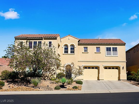 This executive home with the Primary Suite downstairs feels like a single story w Den/Office, Dining, Living room and Laundry all on the main. For family's within families it's perfect with 3 more beds and 2 baths tucked privately away from the rest of the house upstairs with it's own entrance and access to the private courtyard and third car garage! With a pool sized estate lot you'll see beautiful landscaping, and putting green from 5 different french door exits to 4 different patios for leisure. Beautiful architecture, tall ceilings, high-end finishes, and newly renovated features incl. refinished maplewood cabinets in excess, plank flooring, new carpet and paint - along with new 42" built-in fridge and water heater. The oversized 3-car garages hold a lot of extras. This gated community near Raiders Training Center has Trails for walking or hiking, a neighborhood park, and a community park for the kids with pet & water features. Your favorite grocery stores, banks, and all nearby.