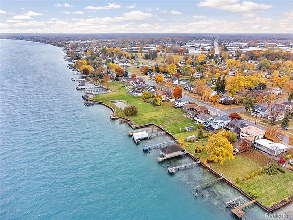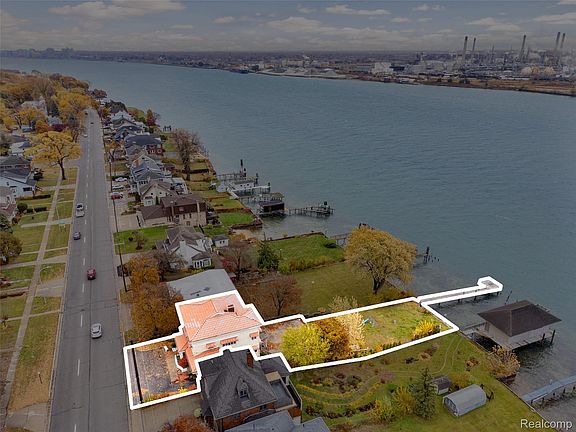 One-of-a-kind, Spanish revival, St. Clair River home. Built in 1928, this fixer upper blends classic character and architectural charm. Enjoy the views of freighters passing by daily. The main floor offers two bedrooms and two full bathrooms, including a primary suite with an enclosed balcony and entryway to the open deck off of the living room. The second floor is a mirror image of the main floor without the second full bath/ensuite. Original doors and hardware, and two beautiful fireplaces highlight the home’s craftsmanship. Additional features include two kitchens, two staircases, central air, and a walk-out lower level with a fifth bedroom, full bath, and half bath. Outside, a steel seawall with dock and fishing platform, patio areas, and a hidden storage shop complement the attached two-car garage. Nestled among architecturally distinctive homes, this property offers a rare opportunity to enjoy the beauty and lifestyle of the St. Clair River. Roof looks like terracotta tiles, but it as actually metal. Home is configured like a duplex with separate entrances for each unit.