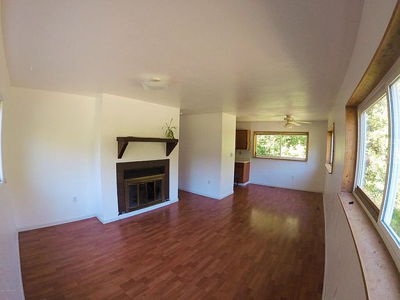 Laminate & vinyl flooring thru-out. SS appliances, including pantry-styled refrigerator in kitchen. Separate Laundry Room. Extra storage closets, incld large attached storage unit which can be used as greenhouse space, man cave, etc. (Hot tub currently there will NOT be removed) Level, treed lot w/quick access to Glenn Hwy. Separate Land Lease (approx $850/yr) thru Native Village of Eklutna.