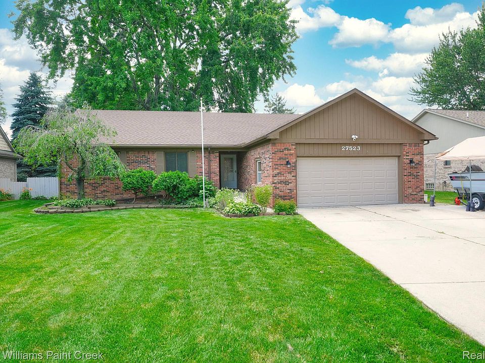 Welcome to this fabulous three bedroom ranch home! Enjoy relaxing is the spacious great room with wood flooring and a fireplace. The kitchen includes plenty of cabinets and an island. Appliances are included. The primary bedroom has double closets and an updated bathroom. The deck off the great room is awesome and so is the large beautifully landscaped yard. Fresh neutral paint! The finished basement features a bar area and family room that is ready for entertaining! Also, an office, 1/2 bath, and lots of storage! Newer roof, furnace, hot water heater, and gutter guards. Move in ready. A must see!