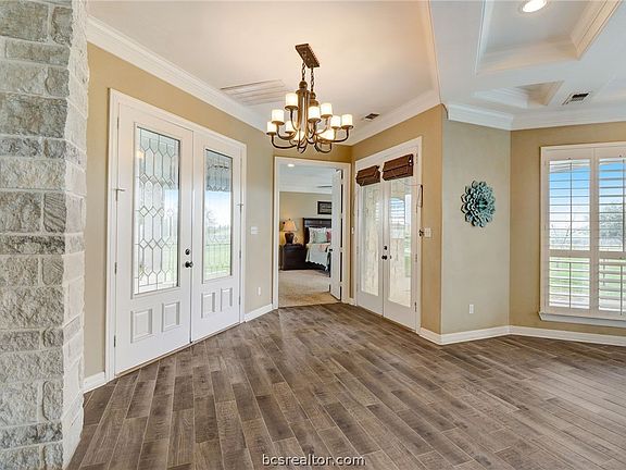 Gorgeous 4 bed 3.5 bath custom home built on 2.74 scenic acres in Waller County! Situated in Spring Hill Farms, this fully fenced property offers gated entry, a 30X40 climate-controlled workshop & a 20X40 barn! A unique gated courtyard provides access to the beautiful double doors at the homes entrance. Inside is sprawling floor plan featuring a spacious primary retreat on the first floor, a luxurious ensuite bath w/double sinks, soaking tub, oversized shower & tons of natural light. The main living area boasts tons of upgrades & architectural details including arches, a floor to ceiling wood burning fireplace, plantation shutters & triple crown moulding. The kitchen is a chefs dream w/a huge walk-in pantry, granite island w/cooktop & stainless steel double ovens! Upstairs are 2 secondary bedrooms w/access to the balcony offering stunning views, a walk in attic & private quest quarters w/full bathroom! Amenities include: outdoor kitchen, covered back patio & oversized garage! Must see!