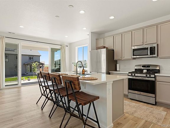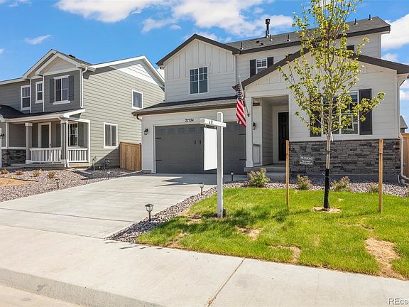 A beautiful citrine model recently built house in the flourishing Sky Ranch neighborhood! New to the market, this 3 bed 2.5 bath comes included with a optional study/4th bedroom, full landscaping with gorgeous red maple tree out back, upgraded stainless steel GE appliances, luxurious light colored Luxury Vinyl Tile flooring downstairs, and gas fireplace. The downstairs open floor plan is perfect for meals with the family or hosting guests. Large 13x13 back patio has all the grill and chill space you need. Lots of large windows have the house filled with natural light. A quiet, tight knit community development just off the I 70 and e470 out of the hussle of aurora, but close enough for all the necessities. Come check out your new home!