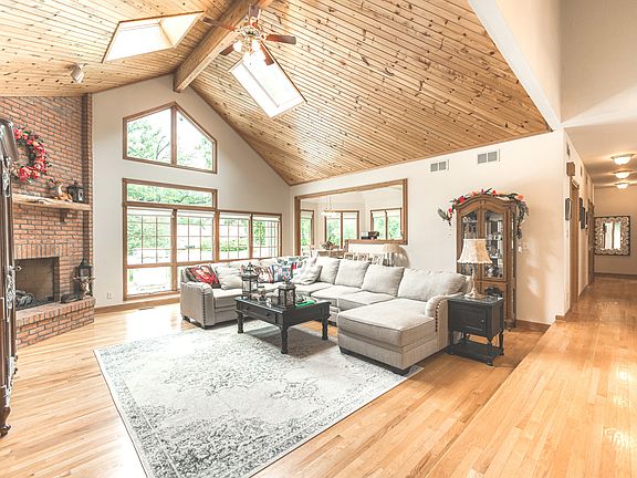 Custom built ranch, original owner! Located on Sycamore's North Side in a darling country subdivision, this ranch style home offers much space inside and out. With over 4,200 square feet of living space, you can easily live on the top floor and use the lower level for entertainment. With mature landscape, a brick exterior and grand entrance, you find yourself inside a quality home. The open floor plan features a split floor plan, formal Dining Room, and wood accents throughout. Formal and information dining spaces allow for many guests to enjoy a holiday dinner. The living room displays 13-foot vaulted wood accented ceilings, skylights, with hardwood floor through the primary level. Cozy up to the gas fireplace for cool weather memories. Solid 6 panel doors are found throughout the home, as well as a 1st Floor laundry room complete with room to fold/sort. This home is abundant with storage closets as well! The kitchen will delight any chef, with a grand center island, double oven, and hickory cabinets. Designed for entertainment, you can host family and friends, or maybe start a dinner club. Master suite is complete with double closets and large bathroom. Sunken jetted tub and separate stand-alone shower, allow for plenty of room to start or wind down the day. The two guest bedrooms offer a Jack-and-Jill style bathroom as well as hearty sized closets of their own. Add in a hall bathroom for occasional guest use, and you have found the home of your dreams. The lower-level walks out to the backyard and offers a large entertaining space complete with 3/4 bath, and gas fireplace. Bringing your imagination as you create a space for family to laugh and mingle. Add in plenty of storage space in well size rooms on this level. This home has been an award-winning holiday home, with local newspaper write-up on the exterior holiday decoration. In addition, the 3 bay garage is heated and offers great space to keep the cars cozy in those winter months, and cool in those summer months. If you are looking for space and quality, you have found it.