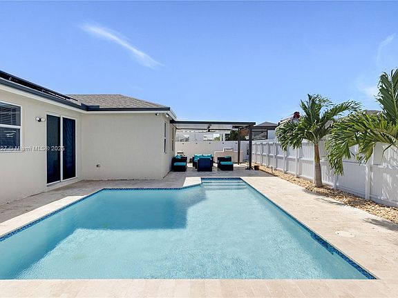 Modern 4-Bed, 2-Bath Smart Home with Pool, Solar Panels & No HOA! This beautifully upgraded residence features ceramic floors, light gray luxury vinyl in bedrooms, brand-new modern lighting, and a stylish kitchen with functional extractor. TVs are pre-wired for seamless entertainment. Outdoors, enjoy a 3-year-old pool, travertine patio, pergola, and ambient lighting, perfect for social gatherings. Security cameras and new solar panels provide peace of mind and energy savings. Ideally located near top schools, shopping, dining, and major highways, this move-in-ready home blends comfort, technology, and modern style, ready to be enjoyed from day one! Easy to show!
