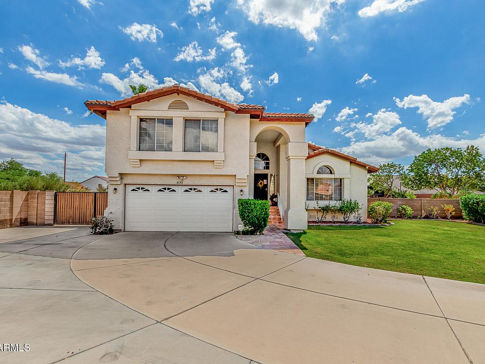 NO HOA! A quiet cul -a-sac neighborhood. A Tri-level home in the Mesa/ Mountain View High School district. Great schools, close access to the Loop 202 freeway and shopping. A Spacious home with charming curb appeal, and inviting entry. Inside, the kitchen features granite counters, stainless steel appliances, ample cabinet space, and views to the open layout. Warm tile flooring flows throughout, enhancing the home's character. Generously sized bedrooms provide comfort and flexibility. Step outside to your private backyard oasis complete with sparkling pebble-tec pool and spa, covered patio, and plenty of space for entertaining. Lots of extra parking.