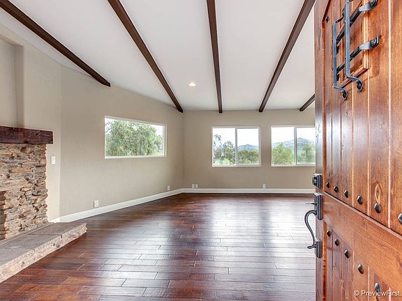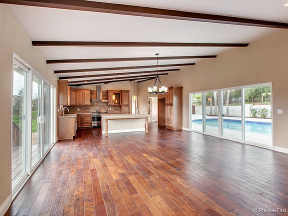 Extensive remodel on this 2560 sqft single story home with panoramic views and sprawling floorplan. Enter into the sunny front courtyard past the sparkling pool and into a large very open concept living space including a huge gourmet kitchen with breakfast bar. Large and isolated master suite, as well as a secondary master suite with private entry. Located on over 5 acres with 2 generous outbuildings including the shop or barn on the upper portion of the lot, and massive 10,000+ sqft warehouse. Excellent views of San Pasqual Valley and Hills. Equestrian potential