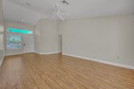 Separate laundry roomSpacious front courtyardVaulted ceilingsOpen floor planWood-like laminate flooring