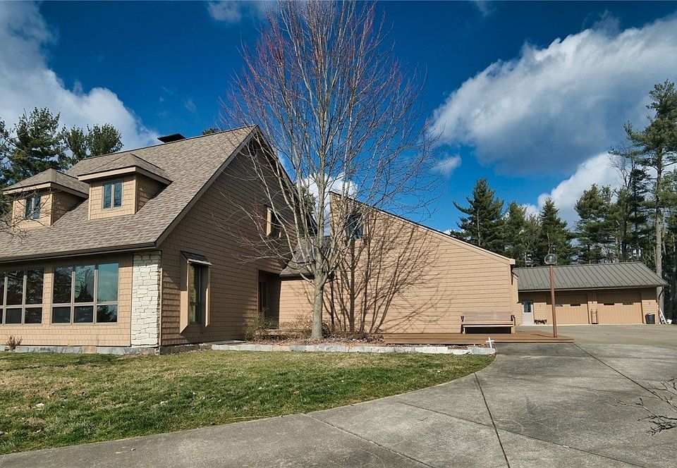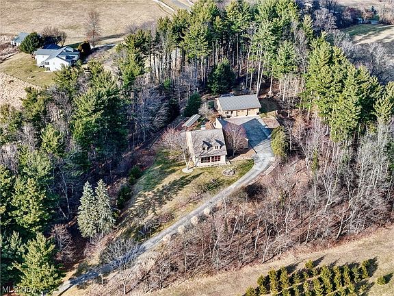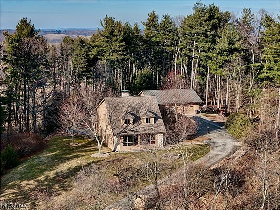 One of a kind property on a hilltop setting with stellar views! There were no corners cut when this home was built. Home has large living room with several windows overlooking the valley, Schrock kitchen, dining area and full bath with laundry area. Main level also has sunroom leading out to beautiful private back patio with firepit. Upper level of the home has large master with walk in closet, two additional bedrooms and full bath. Lower level has large finished space for an office or additional living space. Attached garage has upstairs loft. There is a 1300 sq. ft. detached garage that is fully insulated and finished, 3 garage doors, electric and water. Truly unique property within 6 miles of Atwood and 3.5 miles to New Phila. All seller owned mineral rights to transfer. Several fruit trees, grape arbor, and flowering plants. Make a few cosmetic updates and make this home your own!