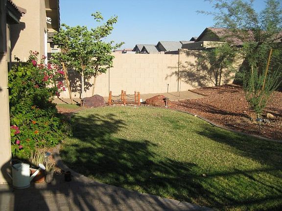 House on the greenbelt by playground and basketball court. Upgraded floors, tile and pergo. Large full wall mirrors on two walls. French doors to the back patio. Citrus trees and landscaping in the backyard. Master bathroom with tub and separate shower and black and white marble floor. Vaulted ceilings with decorative shelves. Kitchen with black granite countertops and black ceramic double sink. New garbage disposal and dishwasher. Two car garage with freezer outlet. Tiled ceramic roof. Wired with an alarm system and soft water filter system. One owner, never rented, respectful neighbors.
