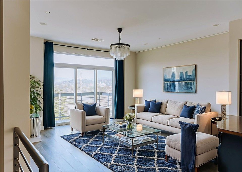 Incredible tri-level townhome with prime panoramic views of Atwater Village and the LA River at the Latitudes community in Silver Lake/Ivanhoe school district. This home features three bedrooms, two-and-a-half bathrooms. Upon entry, you'll find a versatile flex room on the first level, perfect for a home office or gym. The second level boasts an open-concept floor plan with a sun-drenched living area, balcony with views, kitchen, and dining area. Complete with large windows, high ceilings, recessed lighting, hardwood flooring, a center island, stainless steel appliances, this level also has a laundry room and powder room. The third level offers three generous bedrooms and two full bathrooms, providing ample space for family or guests. The master bedroom comes upgraded with soundproof window panes and a custom mirrored sliding door. Various other upgrades throughout the home, including tasteful velvet curtains, premium window treatments and hardwood floors throughout. Delight in the outdoors on the rooftop patio with beautiful sweeping views from both directions and an open entertaining space. The unit has an attached 2-car garage with direct entry into the first level. The orientation of the home is elevated above street, with an unobstructed frontage and dedicated entry path, thus providing privacy and stunning views. This securely gated complex offers a community pool and spa for your relaxation and enjoyment and guest parking. Located within a good school district, conveniently located across from Play Preschool, and close proximity to Atwater, Silver Lake, Griffith Park, shops, restaurants, and downtown LA. Don't miss out on this incredible opportunity! Please note, listing photos have been virtually staged.
