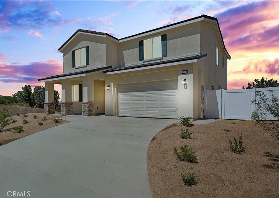 Welcome to Barrington Heights!! Be amazed by this BRAND NEW built home with VIEWS,VIEWS,VIEWS – where style, space, and sustainability come together seamlessly. Situated on a corner lot, this thoughtfully designed residence features a convenient downstairs bedroom and full bath, perfect for multigenerational living or easy accessibility. Step inside to discover the solid surface laminate flooring throughout, a modern two-tone shaker kitchen with black finishes, and sleek GE appliances – including a range with built-in air fryer and a spacious fridge. The open layout is complemented by recessed LED lighting and sliding closet doors in every bedroom, adding both function and flair. Upstairs, enjoy the convenience of a dedicated laundry room with hookups ready to go, and unwind in your spacious primary suite complete with a large tub and separate shower. Outside, a generous backyard with vinyl fencing is ready for you to add your dream pool or other creative garden ideas, let your imagination run wild!! The drought-tolerant front landscaping keeps maintenance low and curb appeal high. Built with energy efficiency in mind, the home includes a FULLY OWNED solar system, heat pump HVAC, and a concrete tile roof with advanced ventilation. The finished 2-car garage features high ceilings and pre-installed conduit for your EV charger or Powerwall – future-ready and eco-smart. All of this in a quiet community with a low HOA and tax rate, and YOU can be the first owner!! Don’t miss this rare blend of modern design, energy savings, flexible living, and so much more - schedule your showing today!!
