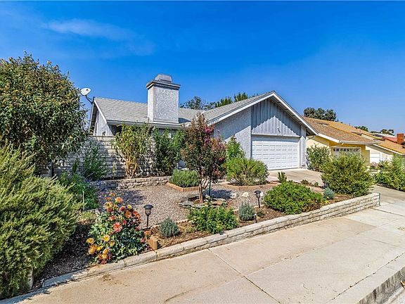Stunning curb-appeal highlights this single-story home with 3 bedrooms & 2 bathrooms in a charming Santa Clarita community. The home is light and bright with high ceilings, beautiful, wood-like laminate flooring, dual-pane windows & sliders, & smooth ceilings with recessed lighting throughout. The spacious living room showcases a sleek, gas fireplace with shabby-chic tile surround & natural wood mantel, plus French doors that lead to a private patio that wraps completely around the home. The kitchen boasts light, wood cabinets with granite countertops highlighted by white-subway tile backsplash and stainless appliances. More kitchen features include a white farmhouse sink, bay window & sliding glass door that opens to the large back patio. A good-sized dining room is just off the kitchen. The master suite includes another sliding glass door to the patio and an updated en-suite bath with stylish barn door, dual sinks with marble countertops & glass-enclosed shower with marble tile surround. There are 2 additional bedrooms, 1 with sliding glass door to the patio & both sharing an updated full bath with glass-enclosed tub/shower combo. The wrap-around patio is perfect for entertaining and features a pergola-covered area in the back, several built-in planters throughout & all surrounded by a gorgeous white, vinyl fence for added privacy. The community has incredibly low fees at just $121 per quarter & includes a community pool, recreation room & basketball court.