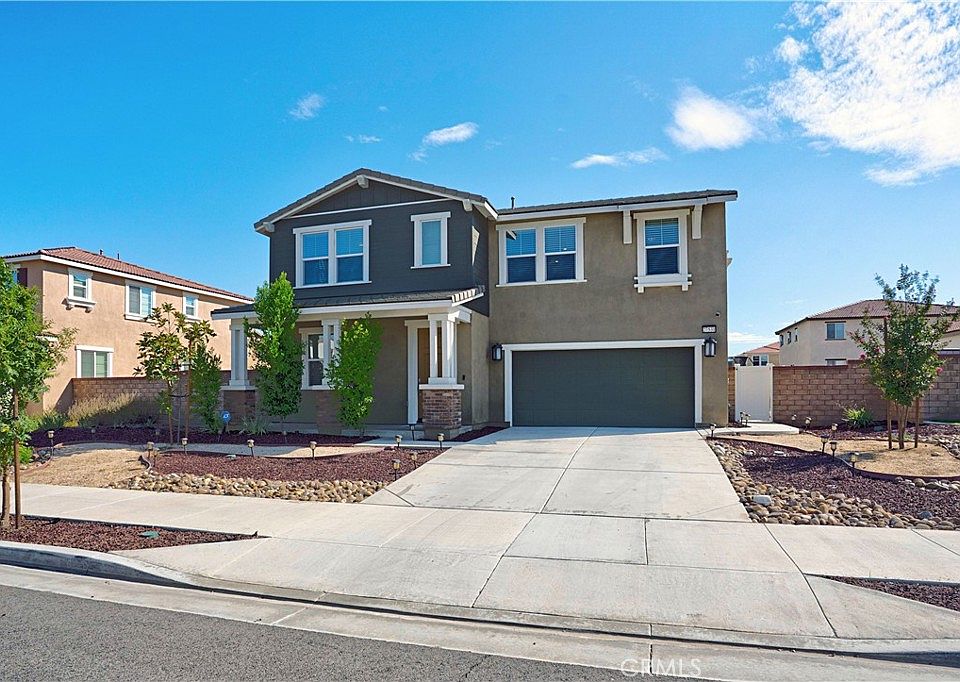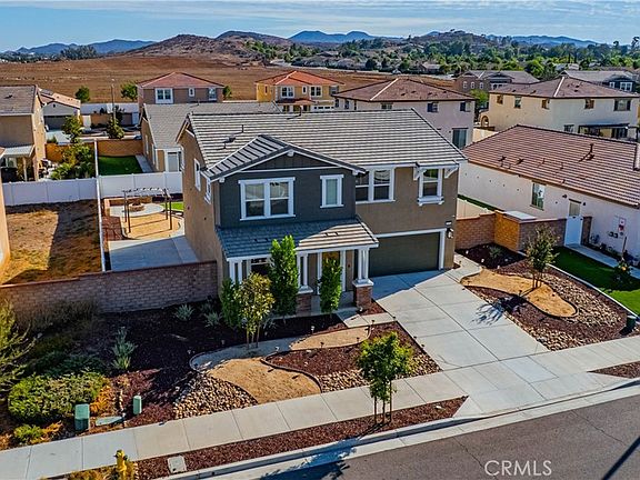 Welcome to this stunning 4 bedroom, 3 bathroom home offering both charm and functionality located in the highly desirable community of Menifee Town Center. Upon arrival, you are greeted by charming curb appeal complete with drought-resistant landscaping, for easy maintenance. Step inside to find a spacious open-concept floor plan. The heart of the home is the oversized kitchen, featuring a large island with seating, granite counter tops, stainless steel appliances, abundant counter space, a walk-in pantry and ample cabinetry, all opening to the spacious family room—ideal for gatherings and everyday living. For those that love to entertain, this area opens seamlessly into the equally impressive backyard, offering low maintenance finishes with artificial turf, concrete hardscape, and a built-in gas firepit for cozy evenings outdoors. This home is thoughtfully designed with a full bedroom and bathroom on the main level, perfect for guests, extended family, or a private office. Upstairs you’ll discover a generous bonus loft that can easily serve as a second living area, game room, or home gym. The primary suite is a private retreat complimented with an en-suite bath featuring a walk-in shower, dual vanity, and walk-in closet. The secondary bedrooms are well appointed in size and complete with walk-closets as well as ceiling fans. You'll also find the laundry room upstairs featuring built-in cabinetry and shelving. You'll absolutely love the touches of character this home has in its layout and accent walls that offer the perfect touch. Located within close proximity to schools, shopping, freeways, parks, a community pool, and scenic walking paths, this home has so much to offer.