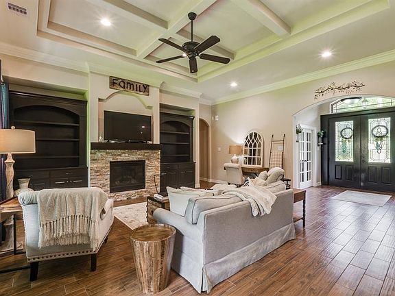 Beautiful Brick & Stone 4 bedroom 3 1/2 bath on 1 full acre in Rio Vista. Welcoming Grand Entrance into the Foyer. Home Features a Study/Office area; Formal Dining; Large Family Room w/ Open Floor plan, built in bookcases and Gas Log Fireplace. Block Trey Ceilings & Crown Moulding in several areas. Large Kitchen w/ Granite Countertops; SS Appliances; 5 burner Gas Range; lots of cabinets & Pantry; & Breakfast area. Large Master Bdr w/ walk-in closet; Master bath Feat. double sink; long Granite Counter; Large shower & whirlpool tub. Split bedroom plan. One secondary bedroom has it's own private full bath w/ granite counters & tub w/tiled shower. The other two bedrooms have large closet space and large bath to share. Covered back tiled patio to enjoy the fenced backyard area. Seller is including a playhouse, windmill, and wooden swing. Large enough area behind the fenced area to bring a horse or place a large garden and/or a pool.