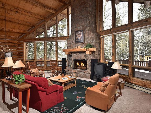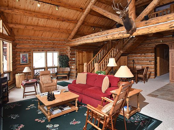 Charming log home on 10 acres with private setting. Open floor plan and beautiful interior log work makes for warm welcoming feeling. 3 min from Red Sky golf, yet affords great privacy in gated community surrounded by pine trees. Rare large flat yard. Lodge style great room w/ stone fireplace and newly remodeled kitchen w/ granite counters. Four spacious bedrooms in main home with caretaker suite over garage.