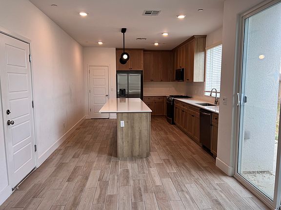 Like new 4 bed 2.5 bath home in gated Brambles community at Copper River. Spacious open concept floor plan featuring wood plank tile flooring, white quartz countertops, modern natural wood cabinetry, stainless steel appliances (includes refrigerator), designer light fixtures and ceiling fans. Great end unit location near community pool. Energy efficient home with solar to reduce your monthly energy cost. Smart home features Ring doorbell, wifi garage control and thermostat. Refrigerator, Washer and Dryer included. Community amenities includes gated entry and community pool. Top Rated Clovis Unified Schools.