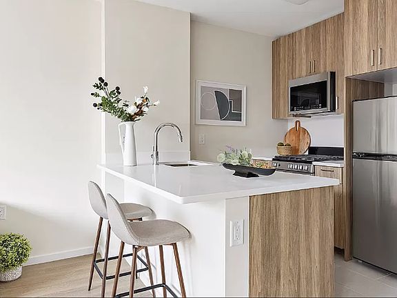 **Park Row | Brand New Luxury Rental | 1 Bed + 1 Bath Bedroom Residence** **Each unit offers immense natural light through oversized 8ft windows & soaring 11ft ceilings! The roof deck at Park Row offers open sunset views towards Jackie Robinson Park to the West and uninterrupted views of the South towards Midtown and the iconic Manhattan skyline.** **Unit Amenities Oversized King Bedroom Marble Tiled Bathrooms Floor to Ceiling Windows Open Kitchen With Breakfast Bar Top of the Line Stainless Steel Appliances Dishwasher Granite Countertops Custom Cabinetry In-Unit Washer/Dryer Abundant Closet Space Hardwood Floors **Building Amenities Virtual Doorman Elevator Two Separate Gyms with Peloton and Mirror Storage Bike Storage Resident lounge/WFH Two Separate Roof Decks 2000 square feet of Furnished Roof Decks With Sweeping views of Manhattan, Bronx, and Queens
