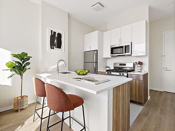 *Park Row ; Brand New Luxury Rental ; 1 Bed + 1 Bath Bedroom Residence* *Unit Amenities:* Oversized King Bedroom Marble Tiled Bathrooms Floor to Cieling Windows Open Kitchen With Breakfast Bar Top of the Line Stainless Steel Appliances Dishwasher Granite Countertops Custom Cabinetry In-Unit Washer/Dryer Abundant Closet Space Hardwood Floor *Building Amenities:* Virtual Doorman Elevator Gym with Peloton and Mirror Storage Resident lounge/WFH 2000 sf of Furnished Roof Decks With Sweeping views of Manhattan, Bronx, and Queens
