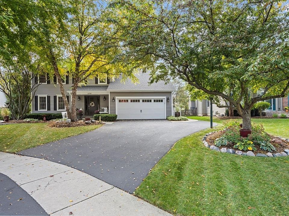 MULTIPLE OFFERS RECIVED-HIGHEST & BEST SUNDAY, APRIL 16TH 6:30 PM. NEW exterior---roof, windows, siding, gutters, expanded driveway and MUCH more can be yours in this lovely home with gorgeous waterfall pond with 6 small Koi fish that backs to open green space for relaxing vistas... Updates: Roof 2017/ insulated siding 2017/ Anderson 400 windows and trim 2017/ $6000 front door 2017/ Expanded driveway with side pad/ Front slate sidewalk/ Epoxy garage floor/ Composite deck/ Kohler fixtures in baths/ Blanco kitchen sink & faucet/ Premium Bosch appliances/ Generator hook to electrical box/ Faucets & internal valves replaced/ Many rooms painted 2023/ Expanded hardwood into living room & refinished 1st floor hardwood 2019...Kitchen has granite counters, trendy black island, picture window over Blanco sink, Bosch appliances, dinette open to family room and has doors to deck. Master bedroom has walk-in-closet and bath has soaking tub, shower, double sinks, medicine cabinet and linen closet. Other 3 bedrooms share hall bath with double sinks and tub/shower. Finished basement offers large recreation room with wainscoting, and bar area with cabinetry, seating, and bar refrigerator. Impressive drywalled, painted, and epoxy floored garage with attached cabinets! Fantastic deck with brick paver patio and walk--you will want to spend your summer watching the fish, viewing the garden, and eating on the patio! Close to shopping, restaurants, Delnor fitness center, parks, middle school, and Peck Farm Park! Everything you want to enjoy life and make memories in your new home!