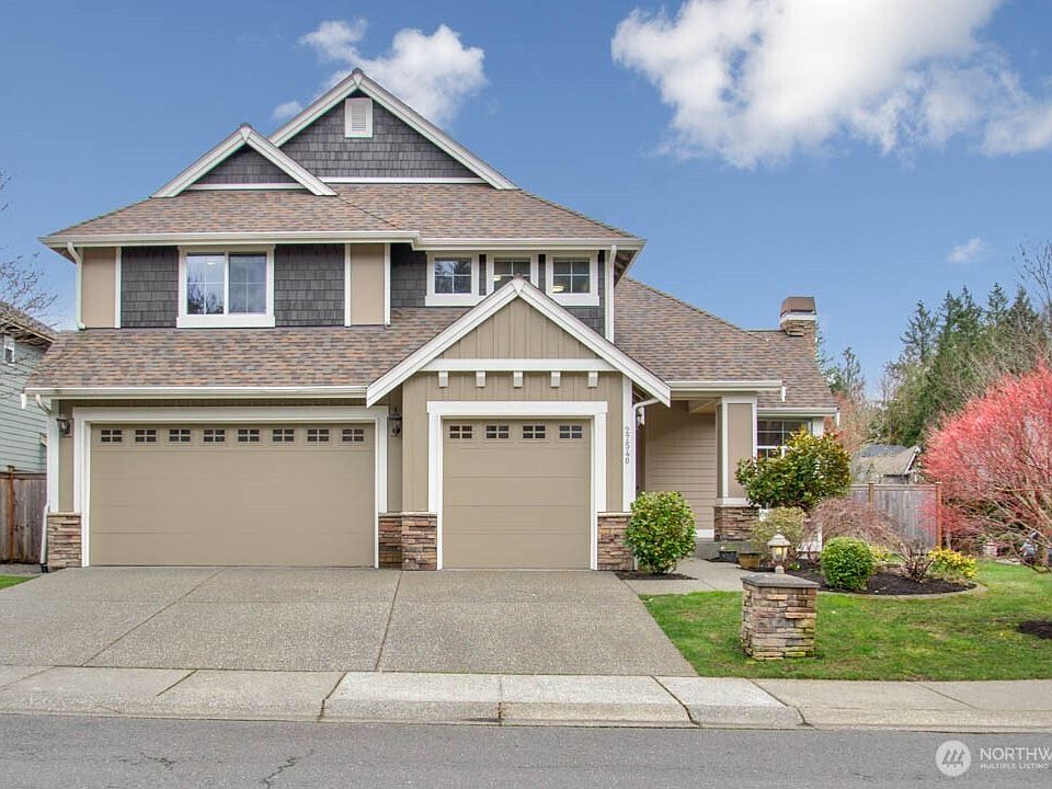 Welcome to this stunning Burnstead home in the prestigious Montaine at Aldarra community, renowned for its luxury residences, scenic neighborhood parks, and breathtaking Cascade views along the I-90 corridor. This exquisite 3,470 sqt home offers 5 spacious bedrooms 3 luxurious bathrooms and a gourmet kitchen featuring sleek slab granite countertops, stainless steel appliances, and beautiful hardwood floors. Entertain in style with formal living and dining rooms, a private Den with an adjoining bath, and a versatile bonus/media room with a custom bar with a wine cooler. The expansive master suite offers the ultimate retreat with his-and-hers walk-in closets. This home truly exemplifies luxury living at its finest!