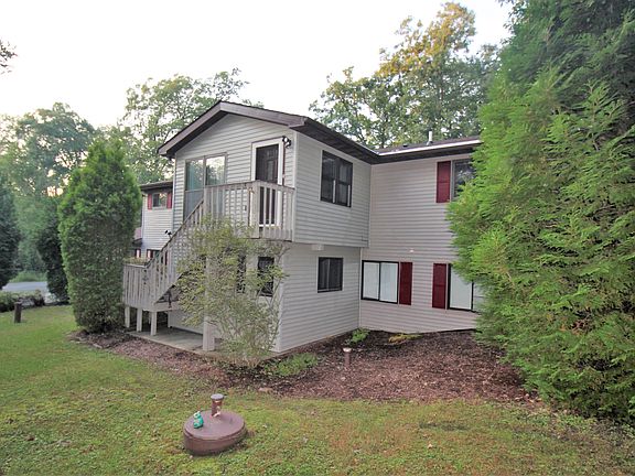 Attention nature lovers! This beautiful home is located on 5 private acres with rolling hills, hiking trails and 2 ponds. Watch the seasons unfold in your park like oasis! 35'x63' outbuilding is perfect for the business owner or weekend hobbyist. Updated kitchen offers new stainless steel appliances, a tiled backsplash & opens to a large sunny dinette complete with skylights. The spacious living room has sliding glass doors that lead to patio. 1st floor laundry & updated bathrooms. Dry basement and home warranty included for piece of mind. This property is also zoned A2 for multiple different uses. You'll love living here! Welcome home to serenity!