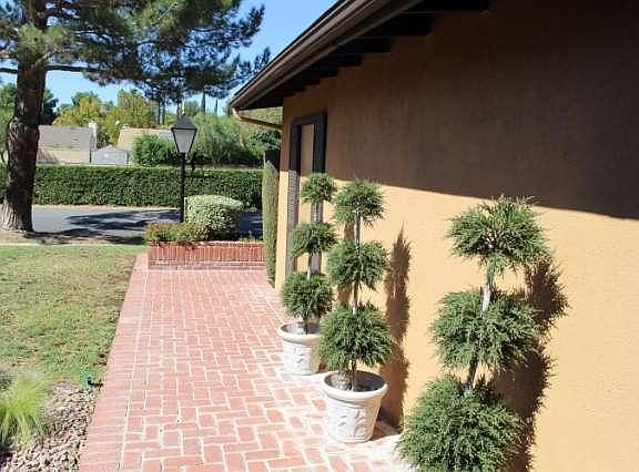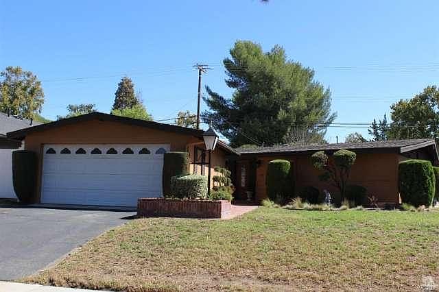 Come Fall in Love with this charming single story French Country inspired decor home. As you enter this cozy home you are greeted with a large open living room, high ceilings with wood beams. Natural light coming through from the beautiful custom floor to ceiling wood framed windows, with designer draperies. An amazing fireplace with an old world flair. The quaint kitchen has granite counter tops and stainless steel appliances. The Formal dining room has custom wainscoting and leads into a large family room with built in shelving, a built-in wine cabinet and ceiling fan. There are 3 spacious bdrms, and 2 baths, double pane windows, custom shutters and new window blinds. Freshly painted exterior. A large private backyard with a covered patio, Fountain, mature plants and trees. New A/C, Newer Roof, Great location and curb appeal. Beautiful turn-key home, Pride of ownership, move-in condition. No HOA, No Mello Roos.